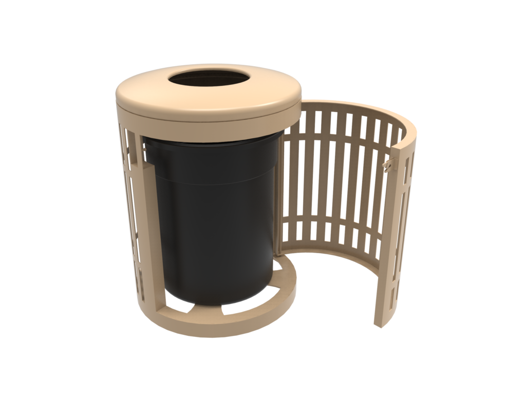 32 Gallon Downtown Trash Receptacle with Flattop – Tapered – Slatted Steel